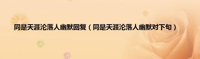 大家好,小科来为大家解答以上问题。同是天涯沦落人幽默回复,同是天涯沦落人幽默对下句很多人还不知道,现在让我们一起来看看吧!