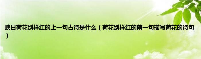 大家好,小科来为大家解答以上问题。映日荷花别样红的上一句古诗是什么,荷花别样红的前一句描写荷花的诗句很多人还不知道,现在让我们一起来看看吧!