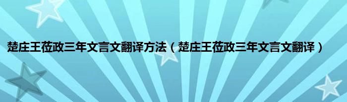 大家好,小科来为大家解答以上问题。楚庄王莅政三年文言文翻译方法,楚庄王莅政三年文言文翻译很多人还不知道,现在让我们一起来看看吧!