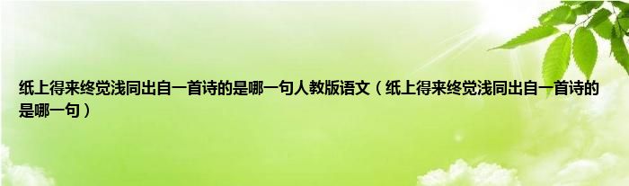 大家好,小科来为大家解答以上问题。纸上得来终觉浅同出自一首诗的是哪一句人教版语文,纸上得来终觉浅同出自一首诗的是哪一句很多人还不知道,现在让我们一起来看看吧!