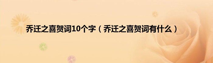 大家好,小科来为大家解答以上问题。乔迁之喜贺词10个字,乔迁之喜贺词有什么很多人还不知道,现在让我们一起来看看吧!