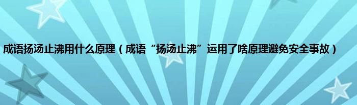 成语扬汤止沸用什么原理(成语“扬汤止沸”运用了啥原理避免安全事故)