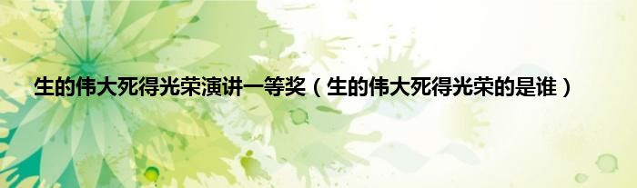 大家好,小科来为大家解答以上问题。生的伟大死得光荣演讲一等奖,生的伟大死得光荣的是谁很多人还不知道,现在让我们一起来看看吧!