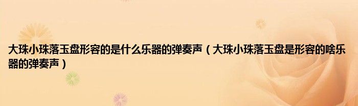 大家好,小科来为大家解答以上问题。大珠小珠落玉盘形容的是什么乐器的弹奏声,大珠小珠落玉盘是形容的啥乐器的弹奏声很多人还不知道,现在让我们一起来看看吧!
