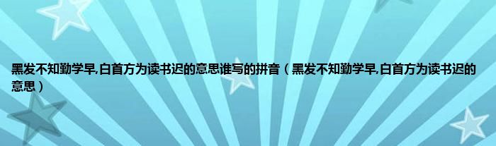 大家好,小科来为大家解答以上问题。黑发不知勤学早,白首方为读书迟的意思谁写的拼音,黑发不知勤学早,白首方为读书迟的意思很多人还不知道,现在让我们一起来看看吧!