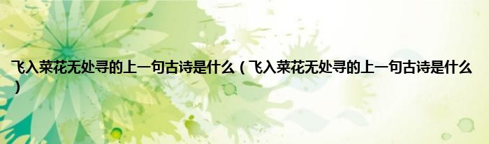 大家好,小科来为大家解答以上问题。飞入菜花无处寻的上一句古诗是什么,飞入菜花无处寻的上一句古诗是什么很多人还不知道,现在让我们一起来看看吧!