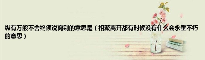 大家好,小科来为大家解答以上问题。纵有万般不舍终须说离别的意思是,相聚离开都有时候没有什么会永垂不朽的意思很多人还不知道,现在让我们一起来看看吧!