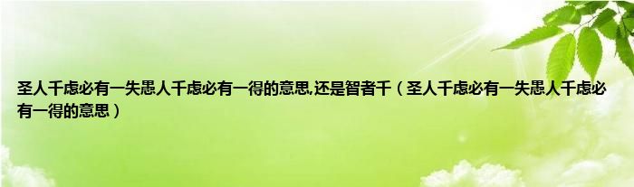 大家好,小科来为大家解答以上问题。圣人千虑必有一失愚人千虑必有一得的意思,还是智者千,圣人千虑必有一失愚人千虑必有一得的意思很多人还不知道,现在让我们一起来看看吧!