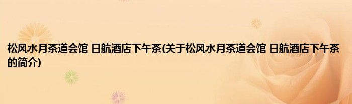 本文关于松风水月茶道会馆 日航酒店下午茶的简介就讲解完毕,希望对大家有所帮助。