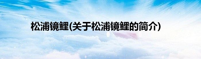 大家好,松浦镜鲤,关于松浦镜鲤的简介很多人还不知道,现在让我们一起来看看吧!