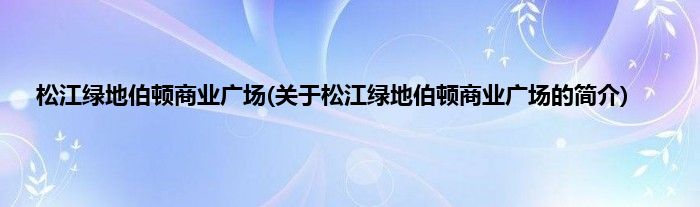 本文关于松江绿地伯顿商业广场的简介就讲解完毕,希望对大家有所帮助。