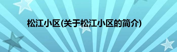 大家好,松江小区,关于松江小区的简介很多人还不知道,现在让我们一起来看看吧!