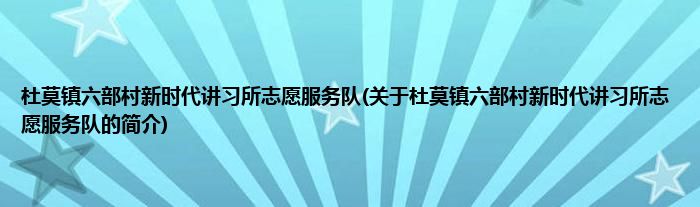 本文关于杜莫镇六部村新时代讲习所志愿服务队的简介就讲解完毕,希望对大家有所帮助。