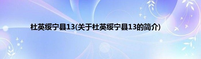 大家好,杜英绥宁县13,关于杜英绥宁县13的简介很多人还不知道,现在让我们一起来看看吧!