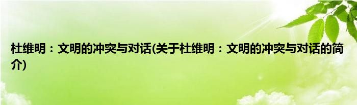 本文关于杜维明:文明的冲突与对话的简介就讲解完毕,希望对大家有所帮助。
