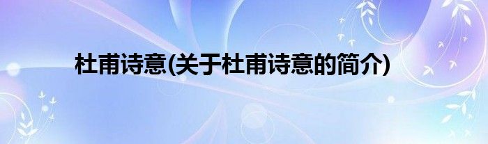 本文关于杜甫诗意的简介就讲解完毕,希望对大家有所帮助。