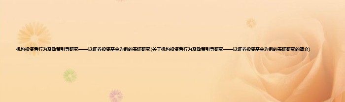 本文关于机构投资者行为及政策引导研究——以证券投资基金为例的实证研究的简介就讲解完毕,希望对大家有所帮助。