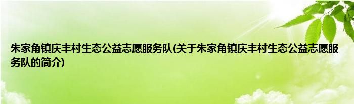 本文关于朱家角镇庆丰村生态公益志愿服务队的简介就讲解完毕,希望对大家有所帮助。