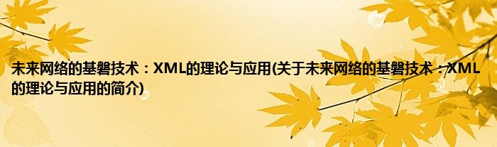 大家好,未来网络的基磐技术:XML的理论与应用,关于未来网络的基磐技术:XML的理论与应用的简介很多人还不知道,现在让我们一起来看看吧!