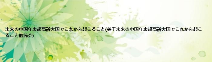 大家好,未来の中国年表超高齢大国でこれから起こること,关于未来の中国年表超高齢大国でこれから起こること的简介很多人还不知道,现在让我们一起来看看吧!