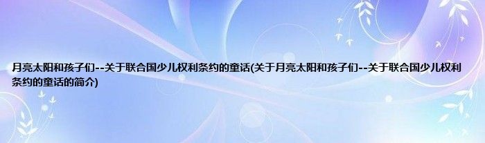 本文关于月亮太阳和孩子们--关于联合国少儿权利条约的童话的简介就讲解完毕,希望对大家有所帮助。