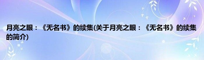 本文关于月亮之眼:《无名书》的续集的简介就讲解完毕,希望对大家有所帮助。