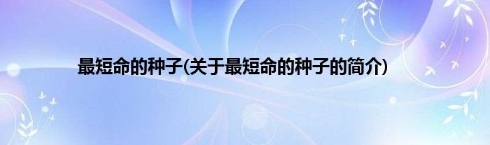 大家好,最短命的种子,关于最短命的种子的简介很多人还不知道,现在让我们一起来看看吧!