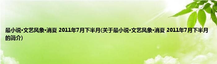 本文关于最小说·文艺风象·消夏 2011年7月下半月的简介就讲解完毕,希望对大家有所帮助。