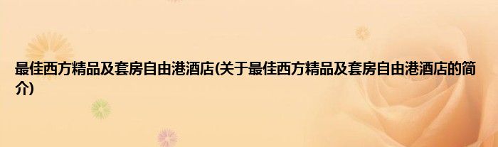 本文关于最佳西方精品及套房自由港酒店的简介就讲解完毕,希望对大家有所帮助。