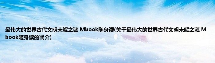 本文关于最伟大的世界古代文明未解之谜 Mbook随身读的简介就讲解完毕,希望对大家有所帮助。