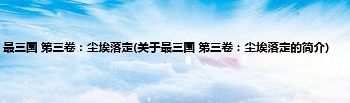 本文关于最三国 第三卷:尘埃落定的简介就讲解完毕,希望对大家有所帮助。