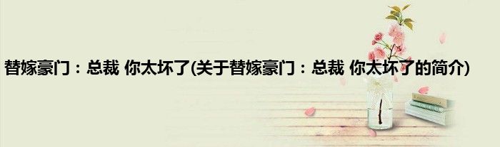 本文关于替嫁豪门:总裁,你太坏了的简介就讲解完毕,希望对大家有所帮助。