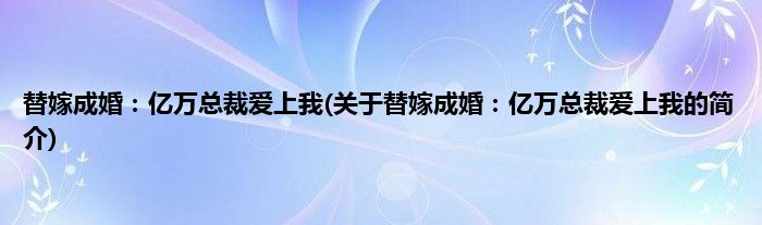 本文关于替嫁成婚:亿万总裁爱上我的简介就讲解完毕,希望对大家有所帮助。