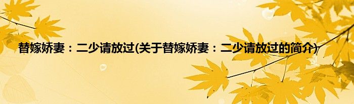本文关于替嫁娇妻:二少请放过的简介就讲解完毕,希望对大家有所帮助。