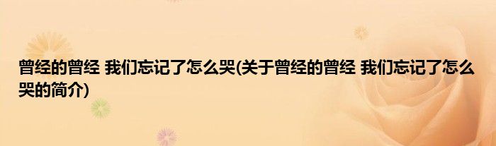 本文关于曾经的曾经,我们忘记了怎么哭的简介就讲解完毕,希望对大家有所帮助。