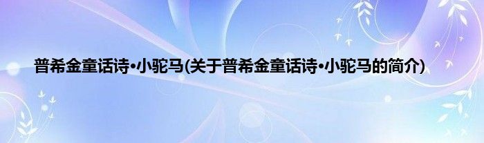 本文关于普希金童话诗·小驼马的简介就讲解完毕,希望对大家有所帮助。