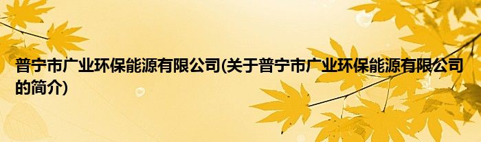 本文关于普宁市广业环保能源有限公司的简介就讲解完毕,希望对大家有所帮助。