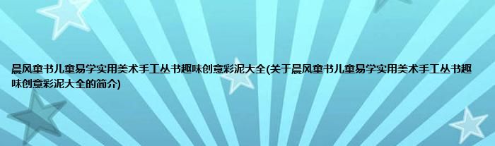 本文关于晨风童书儿童易学实用美术手工丛书趣味创意彩泥大全的简介就讲解完毕,希望对大家有所帮助。