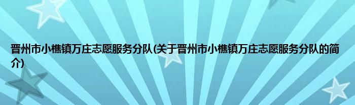 本文关于晋州市小樵镇万庄志愿服务分队的简介就讲解完毕,希望对大家有所帮助。