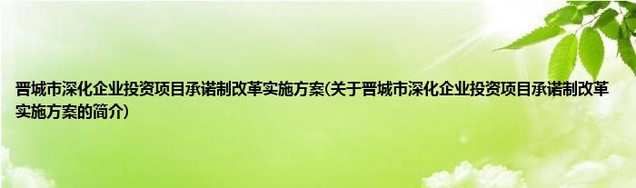 本文关于晋城市深化企业投资项目承诺制改革实施方案的简介就讲解完毕,希望对大家有所帮助。