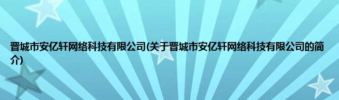 本文关于晋城市安亿轩网络科技有限公司的简介就讲解完毕,希望对大家有所帮助。