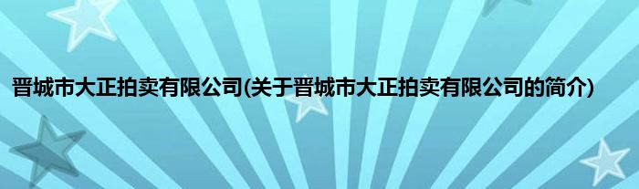 本文关于晋城市大正拍卖有限公司的简介就讲解完毕,希望对大家有所帮助。