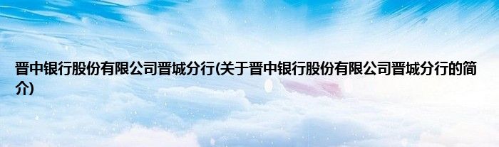 本文关于晋中银行股份有限公司晋城分行的简介就讲解完毕,希望对大家有所帮助。