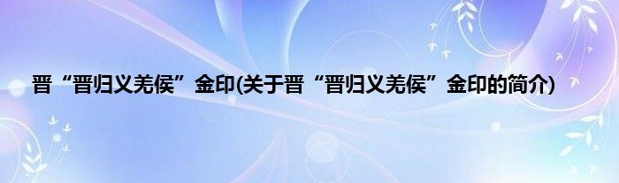本文关于晋“晋归义羌侯”金印的简介就讲解完毕,希望对大家有所帮助。