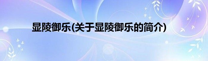 大家好,显陵御乐,关于显陵御乐的简介很多人还不知道,现在让我们一起来看看吧!