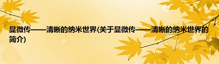本文关于显微传——清晰的纳米世界的简介就讲解完毕,希望对大家有所帮助。