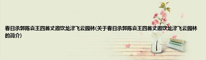 本文关于春日承郭陈袁王四翁丈邀饮龙津飞云园林的简介就讲解完毕,希望对大家有所帮助。