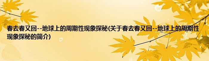 大家好,春去春又回--地球上的周期性现象探秘,关于春去春又回--地球上的周期性现象探秘的简介很多人还不知道,现在让我们一起来看看吧!