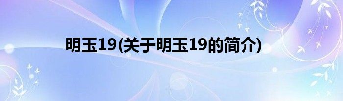 本文关于明玉19的简介就讲解完毕,希望对大家有所帮助。