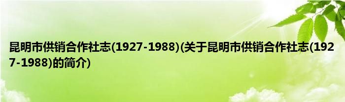 本文关于昆明市供销合作社志(1927-1988)的简介就讲解完毕,希望对大家有所帮助。